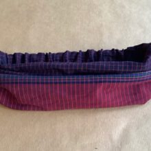 Alle hårbånd tilskæres og syes på mit værksted på Fanø, det betyder også at alle hårbånd er forskellige, da det kommer an på, hvor på Fanøkluden (Fanøtørklædet) båndet bliver klippet fra.