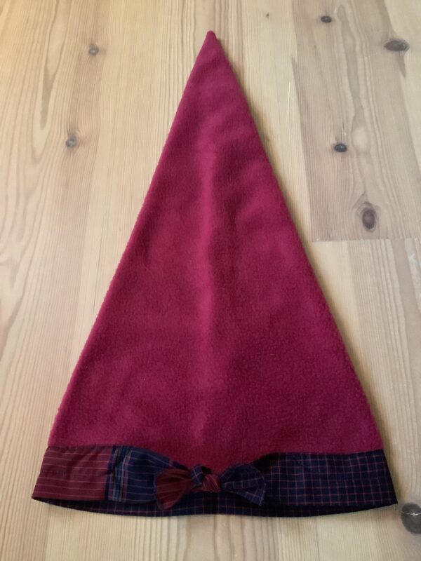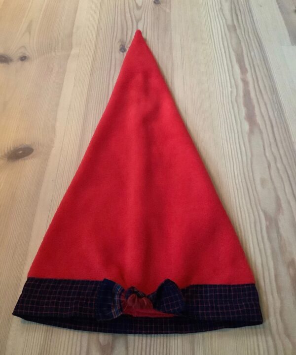 Nissehuerne er i børnestørrelse og kan reguleres i omkredsen da sløjfen foran kan bindes op og løsnes eller strammes.