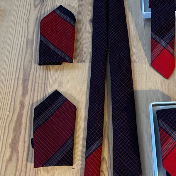 Slipset er syet ud af det traditionelle fanøstof som fanøkonerne før i tiden brugte til deres fanødragt, et håndlavet produkt.